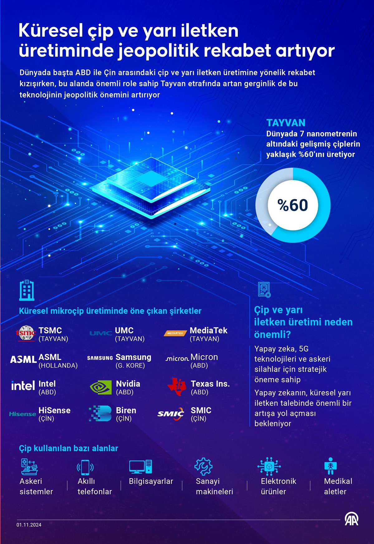 Dünyada başta ABD ile Çin arasındaki çip ve yarı iletken üretimine yönelik rekabet kızışırken, bu alanda önemli role sahip Tayvan etrafında artan gerginlik de bu teknolojinin jeopolitik önemini artırıyor.
